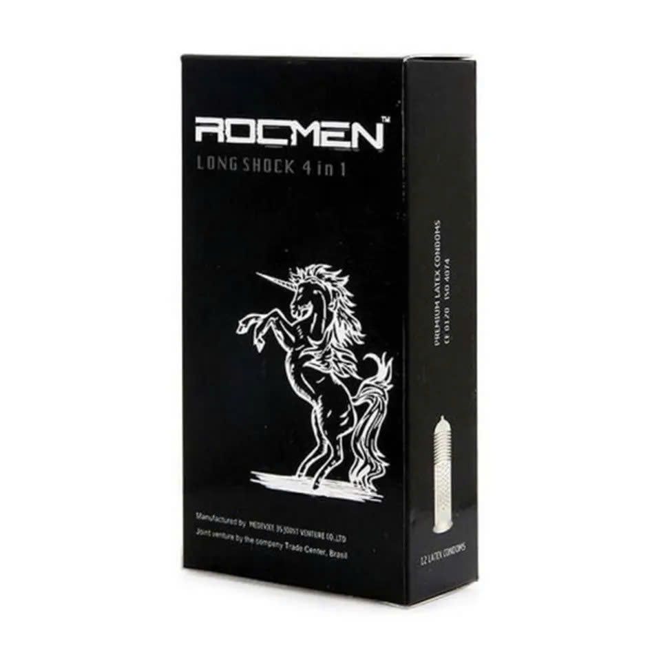 Bao cao su Rocmen ngựa đen Long Shock 4 in 1 cao cấp chính hãng Hộp 12 Bao