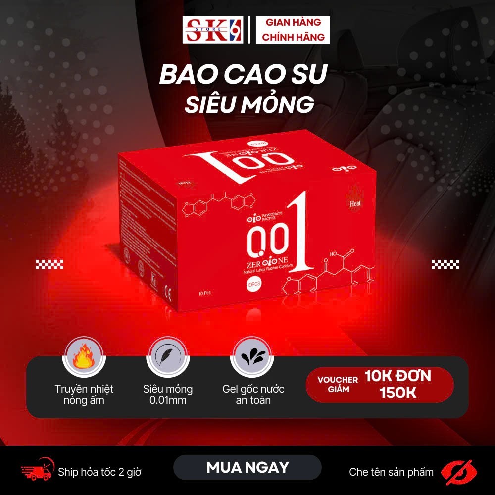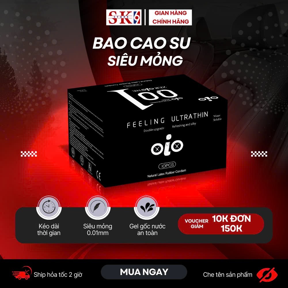 Bao cao su siêu mỏng 001 oio đen kéo dài thời gian cuộc vui ,chống xuất tinh sớm ,nhiều gel bôi trơn , hộp 10 bcs